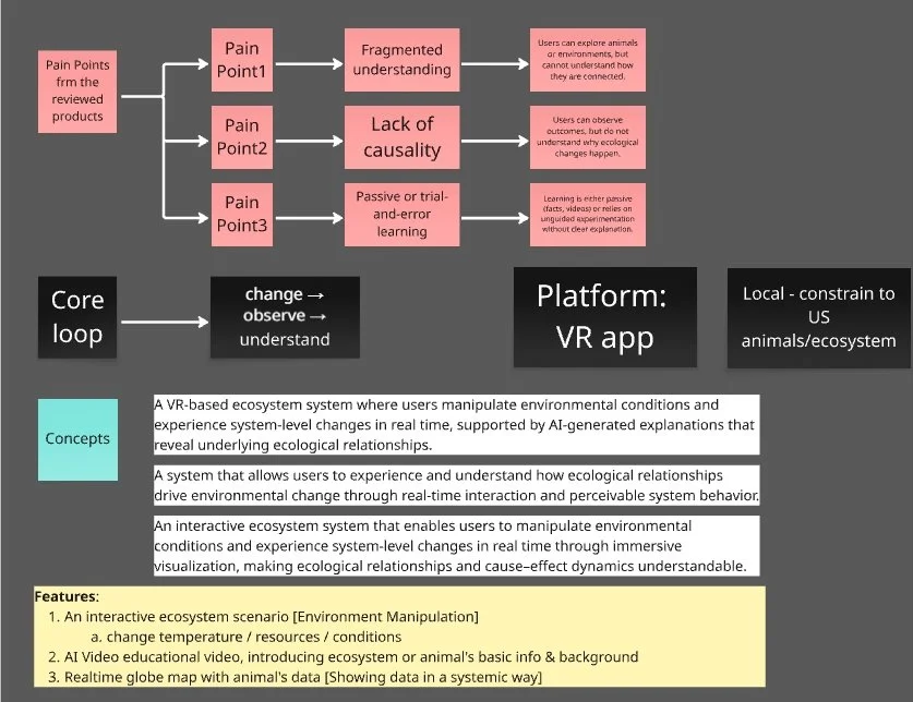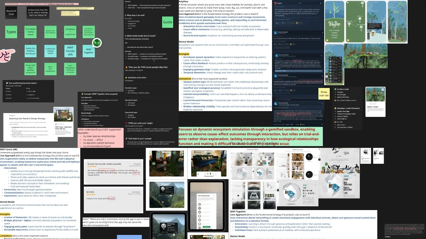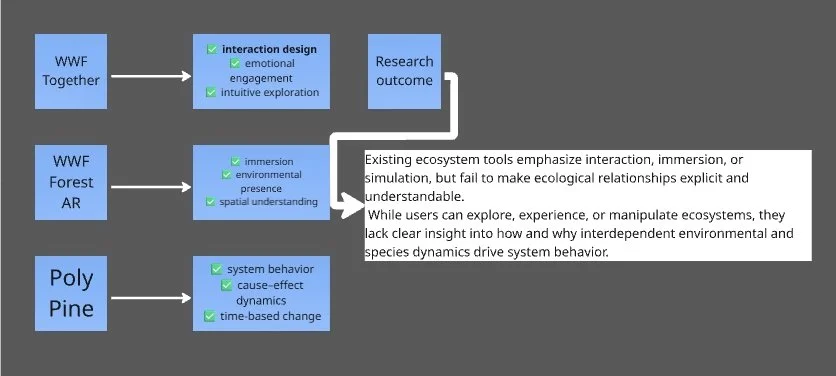 Most educational tools present animals as isolated facts or immersive experiences, but fail to show how ecosystems function as dynamic, interconnected systems.