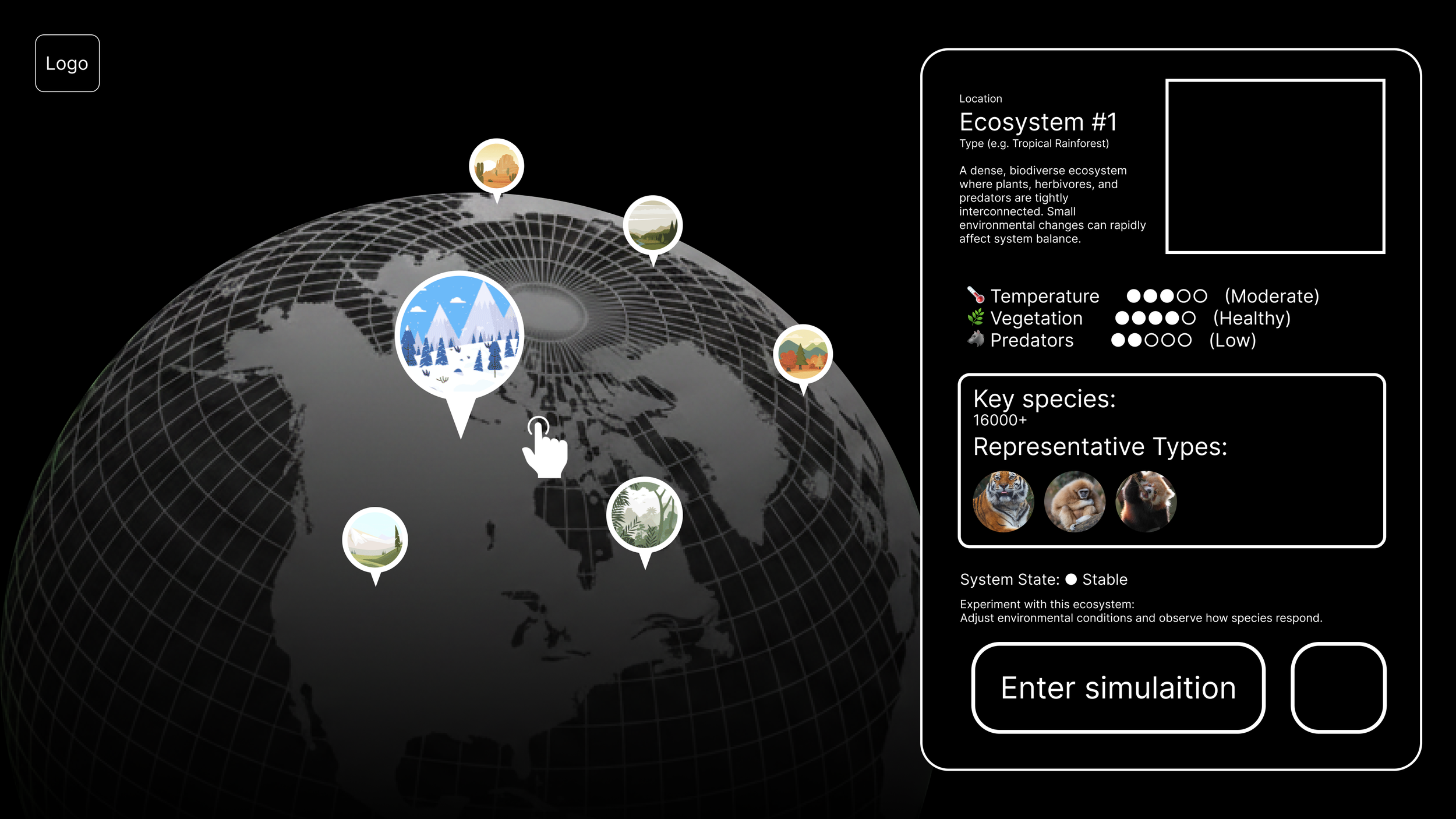 Instead of only seeing animals and landscapes, young learners can interact with ecosystem variables and understand how climate, species, and habitats affect one another.